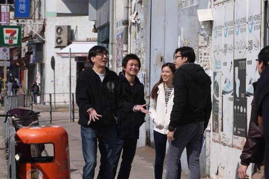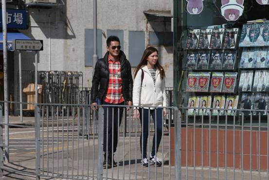 陈堃和黄芷晴在香港街头取景拍摄花絮。(摄像:陈志诚)