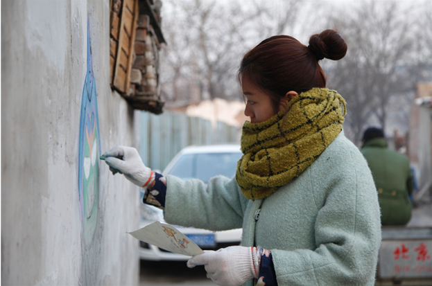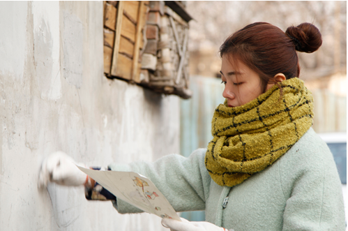 在即将拆除的老墙上作画,她的行为被网友赞为唤醒时代感的心灵鸡汤