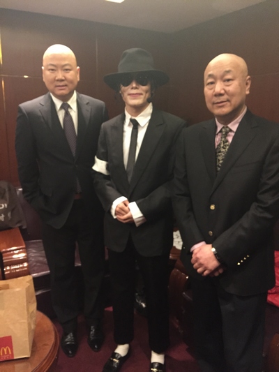 王杰克逊曾在众多场合与各明星互动MJ招牌“太空步”,包括“校长”谭咏麟、郭德纲等,其中也包括当日重遇的央视著名主持人水均益。那是在两年前的一次央视晚会中,王杰杰克逊带领水均益等央视名嘴大跳“太空步”,让一向严肃的新闻名嘴们彻底放松开怀。如今再度相逢,王杰克逊还卖口乖夸水均益老师越来越年轻、越来越帅了!