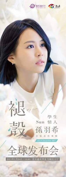 经纪公司趁胜追击,选择在本月26日14:00北京双井麦乐迪KTV(富力城店)举行孙羽希首张《褪壳》专辑全球发布会,邀请湖南卫视歌唱比赛节目《超级女声》出道成为林俊杰、阿杜、金莎同门师妹, 并获《百度新歌首发推荐榜》冠军歌手胡灵特地前来站台,国际品牌Kamill总经理Sylvia yang及影艺公司老板王世雄董事长亲自到场,为年度最有潜力新人孙羽希举行授证仪式并亲自献上祝福。