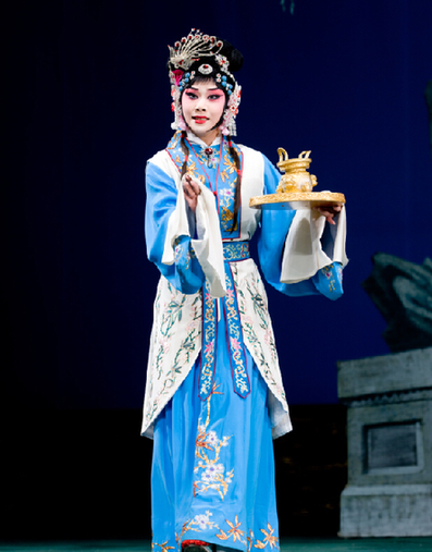 俗话说艺高人胆大,白金不到10岁时,便怀揣着领导人的宿愿与父母来到北京,并一举考取了中国戏曲学院附中。张逸娟老师教了白金《金玉奴》《辛安驿》等基础花旦戏,还请来自己的老师张正芳先生给白金说了《百花赠剑》,拓宽了白金的戏路。而白金到了北京也没有中断和奶奶的联系,每到假期,她都要回到奶奶身边,《打金枝》就是利用假期学习、回学校再仔细琢磨,下个假期再请奶奶及张佩云一起教授指点,这样反复许久学下来的。“《打金枝》凝结着奶奶表演艺术的精华,不可能是我短期拿得下来的,就得认真学、反复学。”
