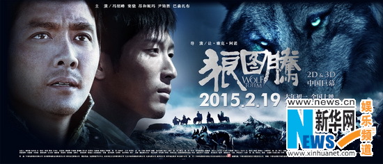 即将于2015年2月19日,农历大年初一与观众见面的,真狼实景拍摄3D华语巨制电影《狼图腾》,从主题曲《沧浪之歌》MV发布到养狼特辑曝光,就一直吊足了影迷的胃口。近日,《狼图腾》再曝重磅消息,发布“人狼情深”版预告片及海报,让影迷对电影的期待值再次升温。片方中国电影股份有限公司也趁热宣布,影片将在情人节档特别献映,提前抢占市场。正式对外公布了 “《狼图腾》情人节档--特别献映计划”。