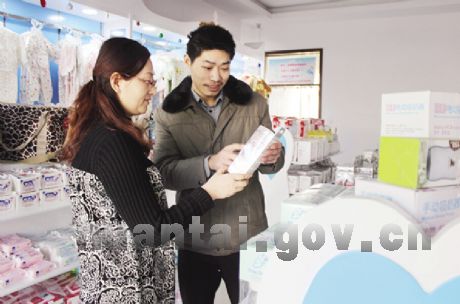 2014年最后一天,记者来到位于羿景嘉园西门南侧的“星期六孕婴童生活馆”时,负责人王浩然正在和店员一起收发货物、整理货架。
