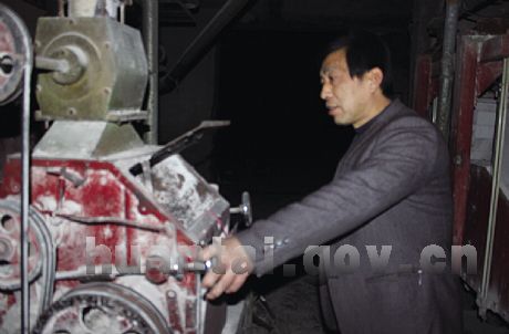 在位于唐山镇唐三村的大强面粉厂厂房里初见罗大强时,最先映入记者眼帘是其憨厚的笑容。虽然天色渐晚,他仍拖着右手空空的袖管在厂房里用左手熟练地操作磨粉机。罗大强今年47岁,21岁那年,在自家庄稼地里粉碎玉米秆的时候,不慎把右手卷进了粉碎机,最终右手肘关节以下被切除。