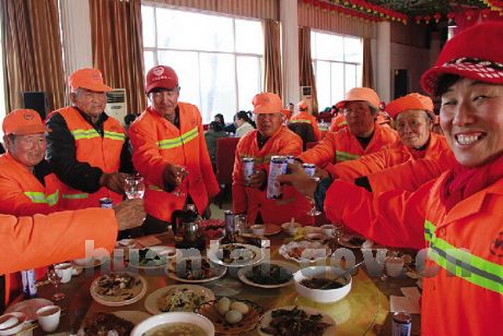 2014年12月31日,位于新城镇毛家村的老鱼屋子饭店邀请全县300多名环卫工人欢聚一堂,共同庆祝新的一年到来,让环卫工人感受到社会对他们的关爱,在新年来临之际,向环卫工人致以最真诚的敬意。
