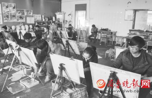 在舜日艺术教育机构的画室内,美术考生们正加紧练习。 王光营 摄