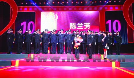 2月5日晚,“感动淄博”10年回顾暨2014年度人物颁奖典礼举行,县公安局警嫂、世纪中学教师陈兰芳被评为“感动淄博”年度人物,县公安局30名民警走上舞台,代表全局民警,向陈兰芳致以最崇高的敬意。