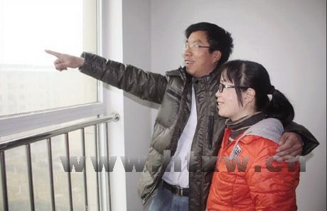 小两口在新家举目远眺,露出了幸福的笑容。李海亮告诉记者,羊年他们夫妻俩最大的愿望就是要个孩子,搬新家。