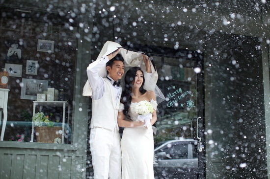 拍摄婚纱当天Darren特别带了他最疼爱的宠物龟入镜,Darren的乌龟很会“快走”,Darren就让他的两只宠物龟在现场自在奔走,一个不注意,两只龟躲起来,害的两位新人还停下拍摄寻找。与两只乌龟一起拍摄全家福的时候,摄影师忍不住大叹龟比人大牌,因为不停重拍都不是因为新人,而是因为两只乌龟没看镜头。