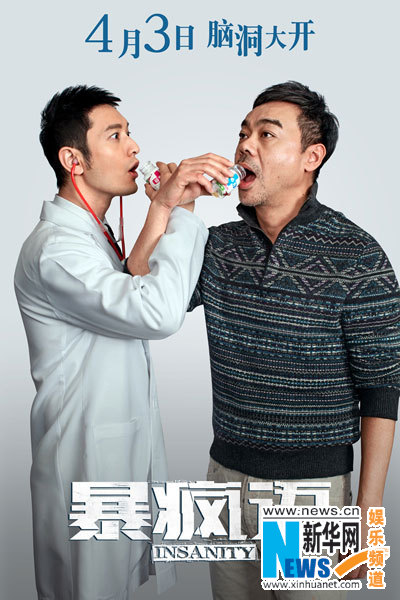 黄晓明医生身负“香港精神科医学院院士”、“英国皇家精神科医学院院士”等五大头衔,笑容亲切阳光,令观众信任度好感度倍增,顿时激发出强大的购买力!晓明医生现身说法,表示根据大量临床治疗研究,“药别停”系列药品能够大大改善情绪病患者症状,使其恢复为“天真可二”的活泼青年。而“药托”叶璇和薛凯琪争相表示,平日心情烦躁,吃不下饭睡不着觉,急需药品改善。身为“患者”的影帝刘青云更是一脸认真地问:“要去哪里可以买到这种药?”此时,晓明医生特别为患者送出大礼,关注“电影暴疯语”的官方微博,就有机会获得“药别停”豪华套装,并叮嘱大家“按时吃药,认真犯二”!