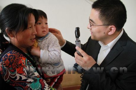 圣洁医院眼科专家上门为小婉晴检查眼睛
