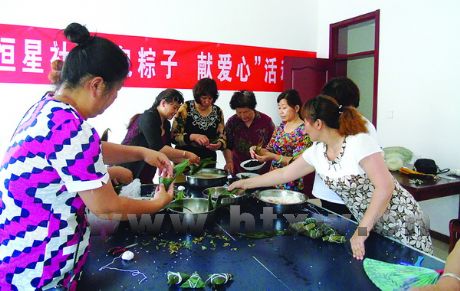 恒星社区居民齐聚一堂包粽子