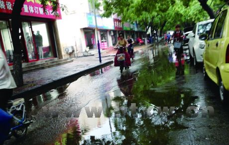 记者在县城建设街看到,短时强降雨导致淄博建筑工程学校附近路段积水严重,积水漫过脚踝,几乎与路沿石齐平,过往车辆只得缓慢通行,不少车辆见此情形,干脆掉头绕行其他道路。在县城中心大街少海医院附近路段,非机动车道积水也较为严重,积水将附近多个小区的大门封堵,导致市民回家也多有不便,不少电动车和行人只能从辅路通行。