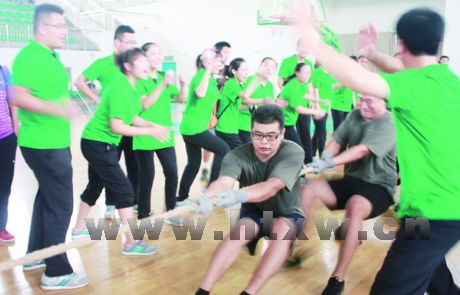 在卫生局代表队与法院代表队进行角逐时,赛场上出现了戏剧性的一幕。由于双方实力接近,比赛场上一度进入胶着状态,啦啦队的加油声更是喊声震天,在震耳欲聋的呐喊声中,所有参赛者咬紧牙关、奋力比拼,红标已经靠近法院代表队,正在大家以为比赛要结束时,卫生局代表队却突然一鼓作气,几秒钟便将红标迅速拉到自己阵营。比赛现场立刻沸腾了起来,卫生局代表队领队告诉记者:“尽管我们平时工作比较忙,一起训练的时间比较少,但我们在赛场上不放弃,抓住机会,团结一致,这才取得了胜利。”