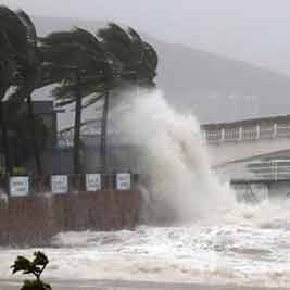 10月18日,今年第21号台风“莎莉嘉”在海南登陆,登陆时强度为强台风级(14级)。登陆后的“莎莉嘉”在三亚掀起巨浪。
