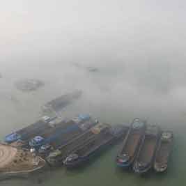 11月14日,淮河江苏淮安段被大雾笼罩。
