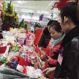 >市民在信誉楼商场选购圣诞装饰