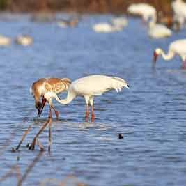 12月23日,鄱阳湖鲤鱼洲流域的白鹤在觅食。近期,江西鄱阳湖迎来越冬候鸟迁徙高峰。据江西鄱阳湖国家级自然保护区管理局监测显示,今年飞抵保护区的候鸟总数达到16万只,主要包括大雁、小天鹅、鸿雁、白鹤、东方白鹳等14种。鄱阳湖是中国最大的淡水湖,同时也是国际重要湿地、亚洲最大的越冬候鸟栖息地。每年占世界总数95%以上的白鹤、50%的白枕鹤、60%的鸿雁都在鄱阳湖区越冬,被誉为“候鸟天堂”。