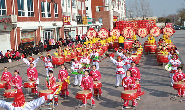 ? ? 元宵节扮玩活动将在县文体中心拉开帷幕,连日来,全县各扮玩队伍在加紧排练。图①为2月18日,果里镇龙南小学50余名学生在紧张地排练节目《傻子扑蝶》。图②为果里镇后鲁村100多人组成的鼓舞队在紧张地排练。