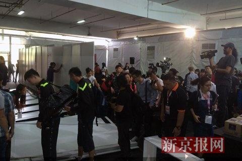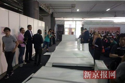 原标题:世乒赛新闻发布厅隔板围墙倒塌