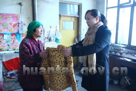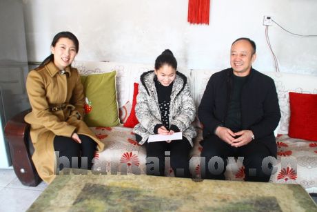 在新城镇城南村李雪艳家中,结对“妈妈”毕秀华为李雪艳带去了自己精心准备的新衣服和过节物资,并将几百元钱塞到了雪艳奶奶的口袋中,叮嘱说:“这是给孩子的压岁钱和新衣服,雪艳长大了,这些新衣服都应该挺合身的。”