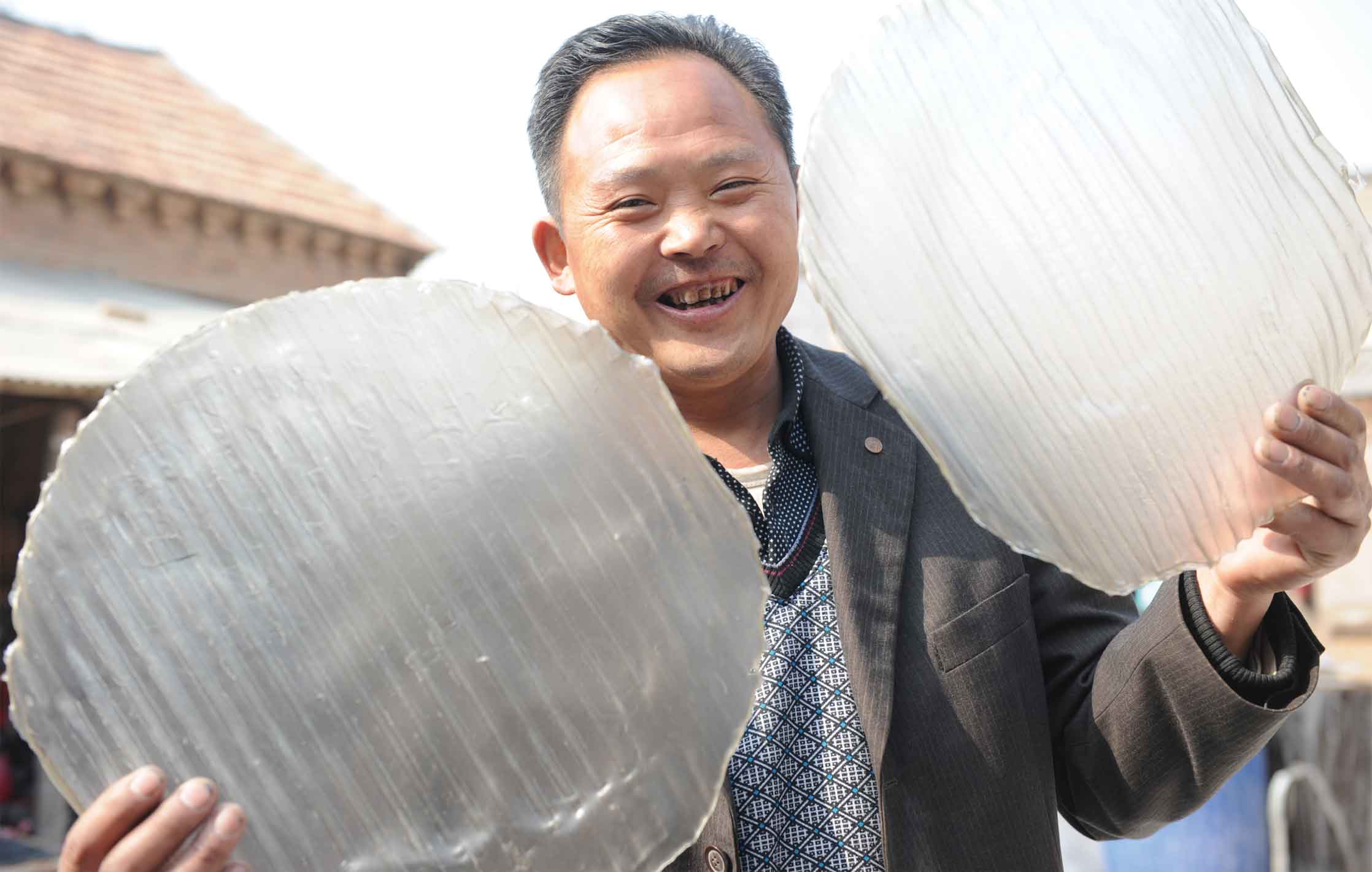 巩志强从小就跟着父亲学习制作粉皮,到现在已经近30年的时间,他从未放下过这门祖传的老手艺。