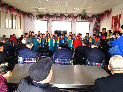 ? 在老年公寓里,队员们陪老人们聊天,给老人们表演节目,和敬老院的老人们度过了一个充满欢声笑语的欢乐时刻。