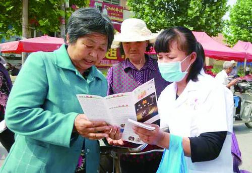 5月29日,荆家镇卫生院医护人员走进前刘大集,开展“世界无烟日”宣传。 ? ? ? ? ? ? ?(张阳 孙玉玲 摄)