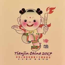 7月3日,第十三届全运会会徽与吉祥物正式亮相。第十三届全运会会徽由书法字“津”、“13”、“张开双臂的人形”和“海河”等元素构成,呈“火炬”造型,取名为“奔向未来”。吉祥物取名为“津娃”,取材于天津杨柳青年画,并与现代卡通形象进行了有机整合,具有浓郁的民族风格和天津特色。第十三届全运会将于2017年9月在天津举行,赛期为13天。