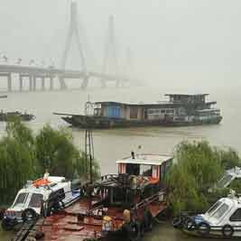 7月6日,船只停靠在岳阳洞庭湖大桥附近水域。受持续强降雨和上游来水影响,洞庭湖城陵矶水位持续上涨。据湖南省水利厅信息中心监测数据显示,截至7月6日18时,洞庭湖城陵矶水位达到34.29米,超警戒水位1.79米。当地防汛部门正严密监控水情雨情,加强堤防巡查,力争安全度汛。