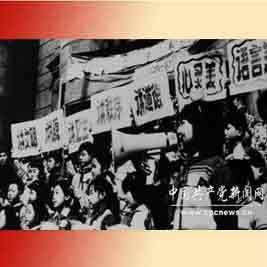 1983年起,全国开展“五讲四美三热爱”活动。图为南京中小学生在街头宣传。