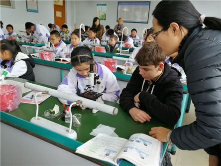 ? ? 澳洲师生到达学校后,第一时间进入中国课堂,体验中式教育。语文课上,两国师生通过“一对一数字化教学”一起体验《西游记》的魅力,兴趣盎然;数学课上,老师运用教具引领大家一起学习,完全没有语言障碍;生物实验课,老师让班里的孩子分小组和澳洲同学一起分享细胞的奥秘;体育课是孩子们的最爱,时时处处充满欢声笑语。