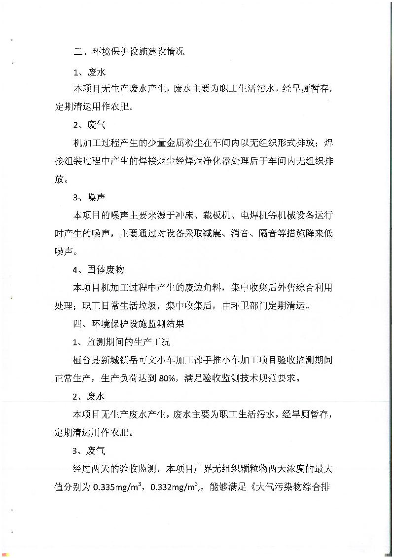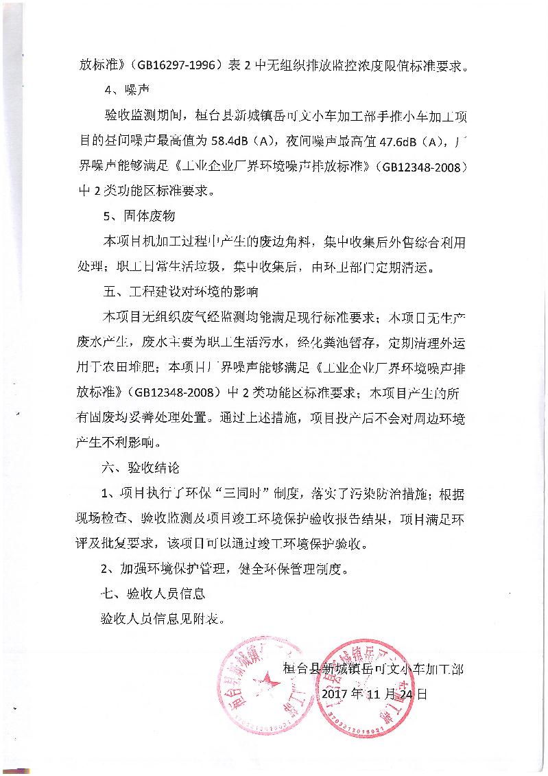 桓台县新城镇岳可文小车加工部手推小车加工项目竣工环境保护验收意见