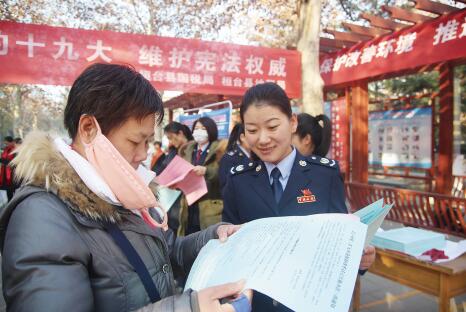 在县司法局的展台前,工作人员向市民发放《法治文化公园宣传册》《淄博市公共法律服务》《青少年法德教育读本》等普法材料,解答群众提出的法律问题;在国税局与地税局设立的联合展台前,工作人员向市民发放宣传彩页,宣传水资源税;工商局工作人员讲解如何利用新《消法》在网购中保护自身权益;农业局工作人员讲解农资领域相关法律;公安民警则引领市民在法治公园长廊中了解禁毒知识和涉毒危害……各执法单位纷纷结合各自的工作职能,向广大市民宣传各自领域所涉及的法律法规,宣传与经济社会发展、维护社会和谐稳定、服务和保障民生相关的法律法规。50余家单位共同唱响了这场精彩纷呈、声部协调的普法“大合唱”,参与单位之众,涉及内容之广,为我县近年来普法宣传之最。