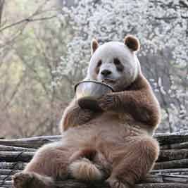 >世界唯一活体棕色大熊猫七仔惬意撒欢