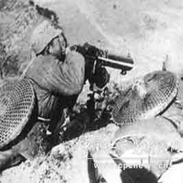 1937年9月25日,八路军在山西平型关一带伏击日本第5师团21旅团辎重队,歼灭千余人。图为平型关战斗中第15五师某部的机枪阵地。