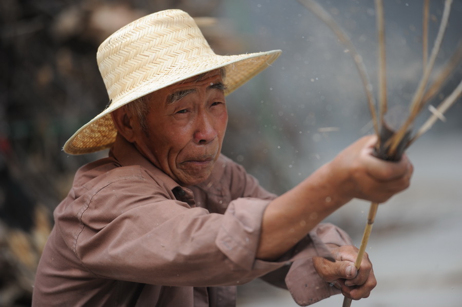 7月19日,起凤镇华沟村,69岁的宋佩忠老人正蹲在地上熟练地编制床席。当地人们都管他叫“万懂行”,意思是在编织方面没有难倒他的。如今,“编席”这一传统手艺正在日渐减少……