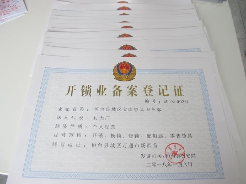 一是梳理备案。对全县开锁企业重新进行梳理,深入开展调查摸底工作,对摸排中新增的开锁企业,及时告知开锁企业业主进行登记备案,同时告知业主备案所需的备案材料。对备案的开锁企业,统一发放开锁业备案登记证。