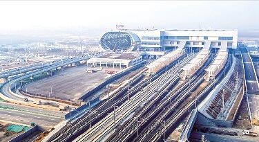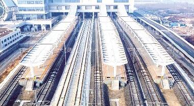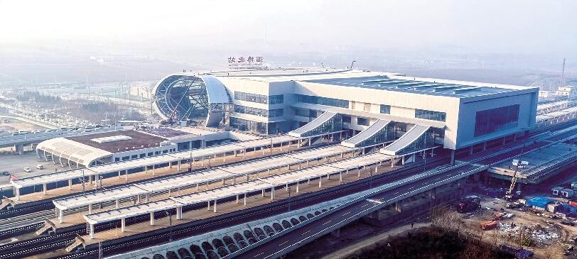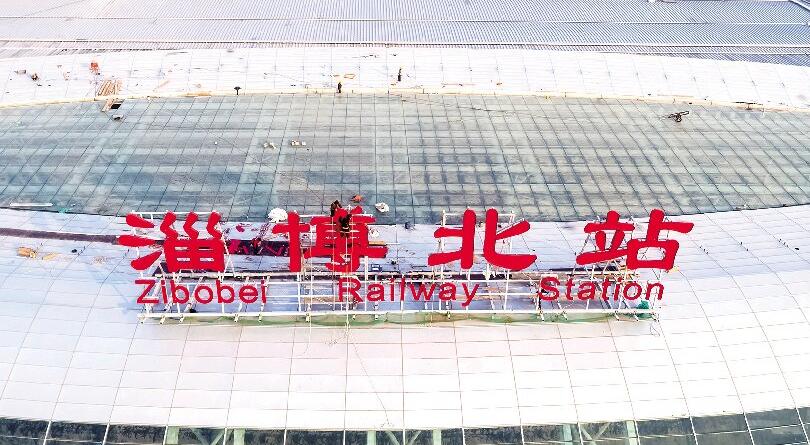 近日,记者来到淄博北站,从空中俯瞰淄博北站全貌,整体建设已基本完成。在南广场,施工人员正在进行最后的收尾工作,主体建筑上“淄博北站”四个大字已经安装完毕,两侧还有施工人员进行最后的调整。据了解,因济青高铁全线站房施工进度不同,原定于本月20日竣工通车的时间往后推迟。根据目前整理好的列车时刻表来看,停经淄博北站的高速列车共有86趟,上下行各43趟。其中,周末线4趟车、高峰线10趟车、日常开行72趟列车,所有列车均为“G”字头高速列车。 (摄影报道/于洋 于寒)