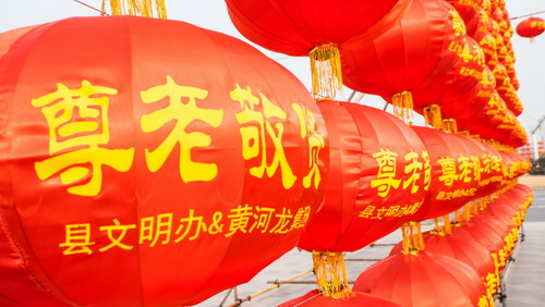 为扩大公益宣传覆盖面和影响力,营造喜庆浓厚的春节气氛,用群众喜闻乐见的形式,把尊老敬贤传统美德和社会主义核心价值观送到千家万户,近日,我县在少海公园、红莲湖、文体中心等公共场所,建起了四处大型喜庆灯笼墙,营造宣传教育氛围,倡导广大市民在春节来临之际,掀起尊老敬贤的时代风尚,让尊老敬贤观念深入人心。 (摄影报道/ 于洋)