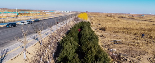 2017年开工建设8条绿道,春冬两季栽植流苏、海棠、梅花、碧桃、丁香、国槐、白蜡、朴树等绿化苗木12万余株。(摄影报道 / 于洋? 伊善进? 石龙迪)