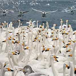 >山东荣成:万只天鹅越冬栖息
