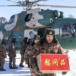 2月1日,新疆军区某陆航旅出动直升机,直飞驻守在阿尔泰山深处的某边防团红山嘴边防连,为连队送去暖心年货和25名换防官兵。
