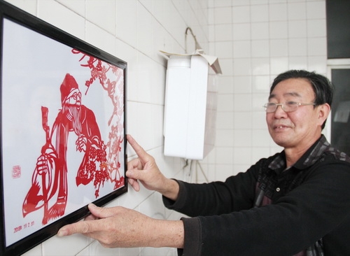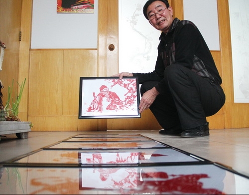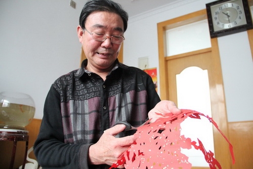 1月30日,记者来到位于云涛小区的剪纸艺人赵兴社家中,看到他正在裁剪带有狗年特色的“福”字,一把剪刀,几张红纸,一双灵巧的手,就像变魔术一样,让一个个栩栩如生的艺术形象,从平淡无奇的纸张中诞生。