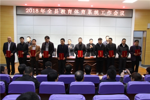 3月8日,2018年全县教育体育工作会议在县城南学校报告厅召开。会议的主要任务是回顾总结2017年度全县教育体育工作,通报表彰2017年度全县教育体育工作先进单位和先进个人,研究部署2018年全县教育体育工作任务,进一步提振精气神,凝聚正能量,合力谋划全县教育体育工作“奋进之笔”。会议由县教体局党委委员、县体育总会会长任东城主持。县教体局党委书记、局长荣若平作讲话。