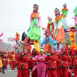 3月1日,山西运城的民间艺人在表演民俗节目。元宵节来临之际,各地一派喜气,热闹迎佳节。