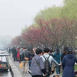 >杭州西湖:桃红柳绿