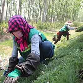 5月9日,记者在新城镇张田路张苏段采访时看到,工作人员正在路边铺设草皮。