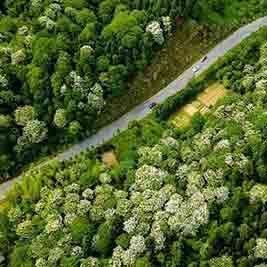 5月1日,江西省新余市的游客车辆穿行于仙女湖区凤凰湾野生泡桐林间。大片泡桐花盛开如雪,令人赏心悦目。