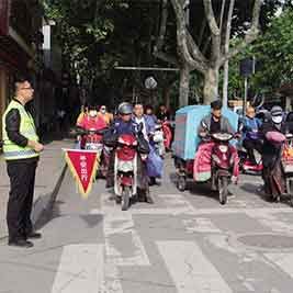 期间,民警首先结合路口实际情况,向学员们讲解了文明交通志愿者的工作职责、自身安全等注意事项,并要求驾校学员在劝导时做到言语文明。随后,民警带领驾校学员们在路口积极引导行人和非机动车自觉遵守红绿灯信号、有序通行,对乱闯红灯、不走人行横道等不文明交通行为予以制止和劝导,积极维护交通秩序,倡导文明交通。